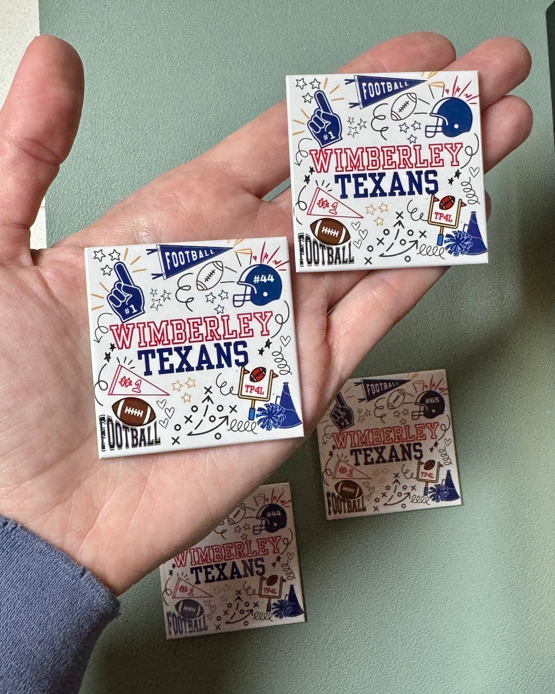 If you are interested in ordering custom School Spirit Magnets, please send me an email at katie@customsnapshotsco.com with the following information for customization of your magnets: